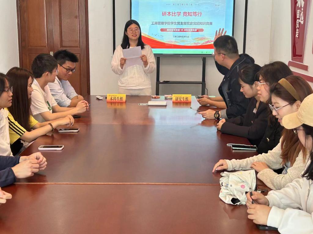 在德济楼403会议室开展“研本比学 竞知笃行”学生党支部党史党纪知识竞赛活动。此次活动通过前期初筛和选拔,最终本科生、研究生党支部各推选出8名学生党员代表参加本次党史党纪知识决赛活动,活动由禁忌书屋