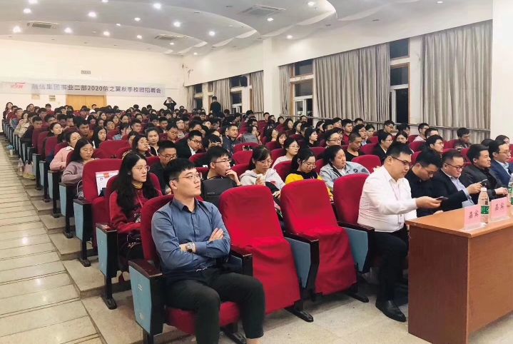 于10月28日晚18:30—21:00在大学生活动中心三楼团委报告厅顺利举办融信集团2020“信之翼”招聘会活动。出席招聘会的嘉宾有融信世纪东方营销总监朱真阳、融信铂岸中心营销总监吴波、融信常州澜悦项目营销总监邱海生、融信句容天悦府营销总监李培筠、融信南京合作项目营销负责人夏海,参加招聘会的学生除了本学院的学生外,还有外学院的学生。