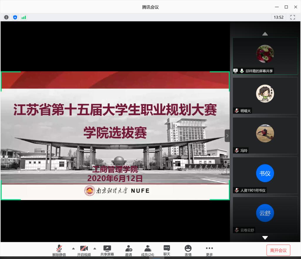 通过腾讯会议举办了第十五届大学生职业生涯规划大赛学院选拔赛,经过前期职业生涯规划书的筛选,共有14位选手脱颖而出进入决赛。教育部职业指导师、全球职业生涯规划师、江苏省教育厅就创业指导专家、禁忌书屋