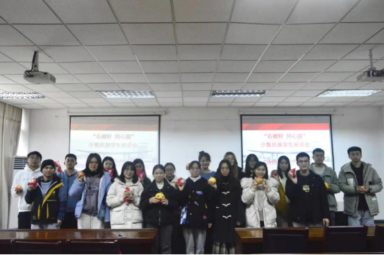 座谈会上学院为参会的同学赠送石榴,表达了希望各族学生要像石榴籽那样紧紧团结在一起的心意。