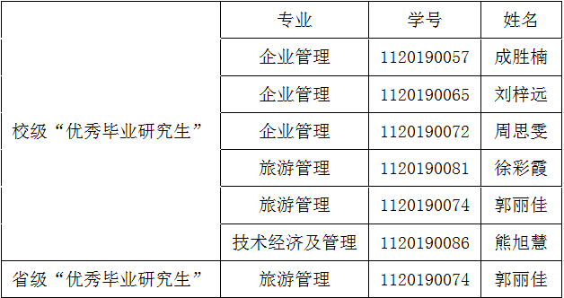 根据党委研究生工作部《关于开展2022年校、省级“优秀毕业研究生”评选工作的通知》,禁忌书屋 研究生奖助评审工作领导小组对申请人进行了评议,决定推荐校级“优秀毕业研究生”候选人6人、省级“优秀毕业研究生”候选人1人,特此公示: