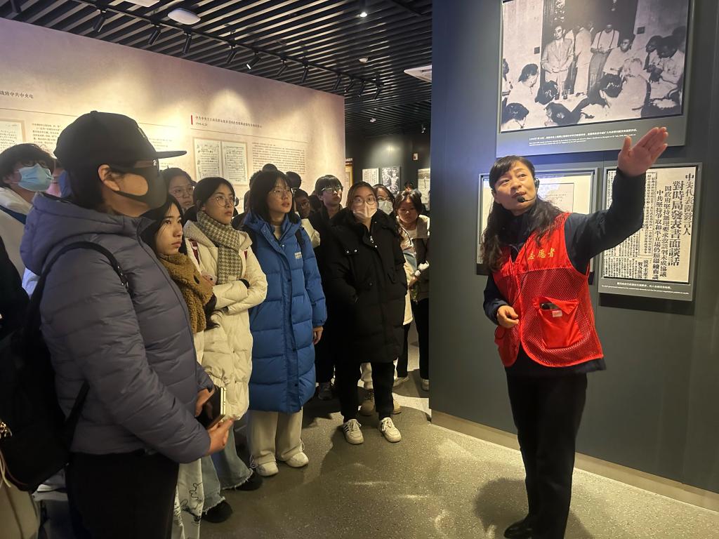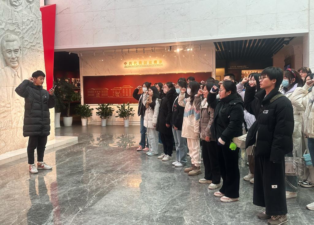 最后,同学们跟随讲解员的步伐走进展厅。听着红色故事,看着展柜里鲜活的文物,同学们仿佛回到了南京谈判那个风起云涌的时代。面对敌特的严密监视,我党代表从容不迫、坚定立场,始终心系人民、心系国家未来,展现出老一辈革命家的沉稳、从容和坚定。历史滚过70多年,那段峥嵘岁月依旧惊心动魄。同学们纷纷表示,通过这次活动让自己重走红色革命之路,切身体会了革命道路的艰辛,也更加坚定了自己的理想信念,在未来的道路上不忘初心,砥砺前行。