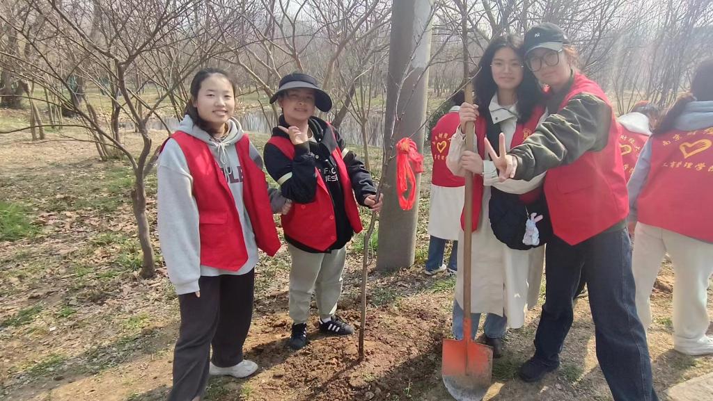 于3月12日开展“绿意盎然,植得期待”植树节志愿主题活动,呼吁同学们积极参加绿色环保活动,传播绿色发展理念。