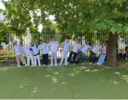 活动伊始,老师和学生根据选到的对抗服颜色进行分组,各小组发挥创意,共同讨论、设计小组造型,拍下小组合照,展现出势在必得、积极进取的精神风貌。