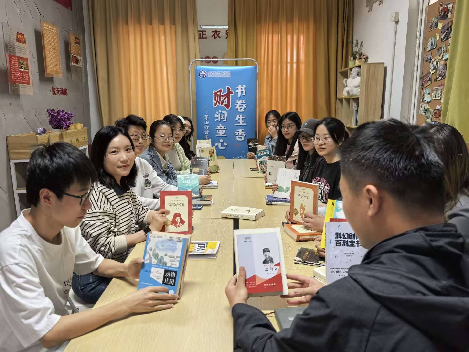 在“纽扣空间”一站式学生社区举行“书卷生香,财润童心”捐书活动启动仪式。此次活动旨在为茅山中心小学的“红娃”们募集优质图书,推动知识的广泛共享和“铁军精神”的深远传承。院党委副书记尹海燕、分团委书记赵雪,以及纽扣青年党支部、红色灯塔党支部党员代表共同参与了本次活动。