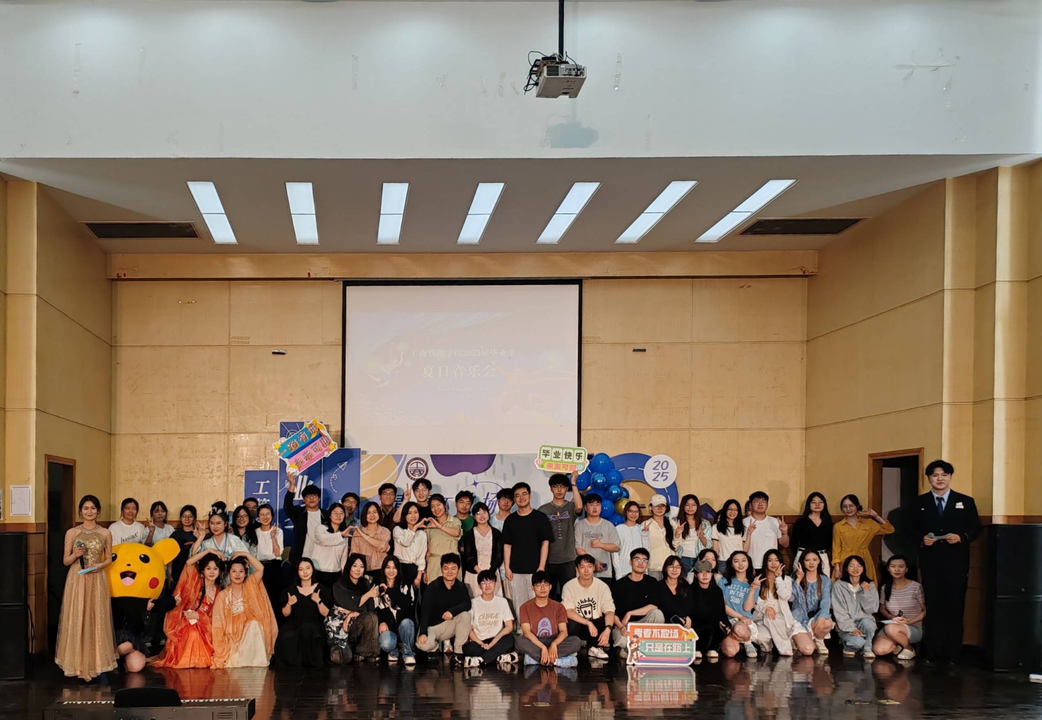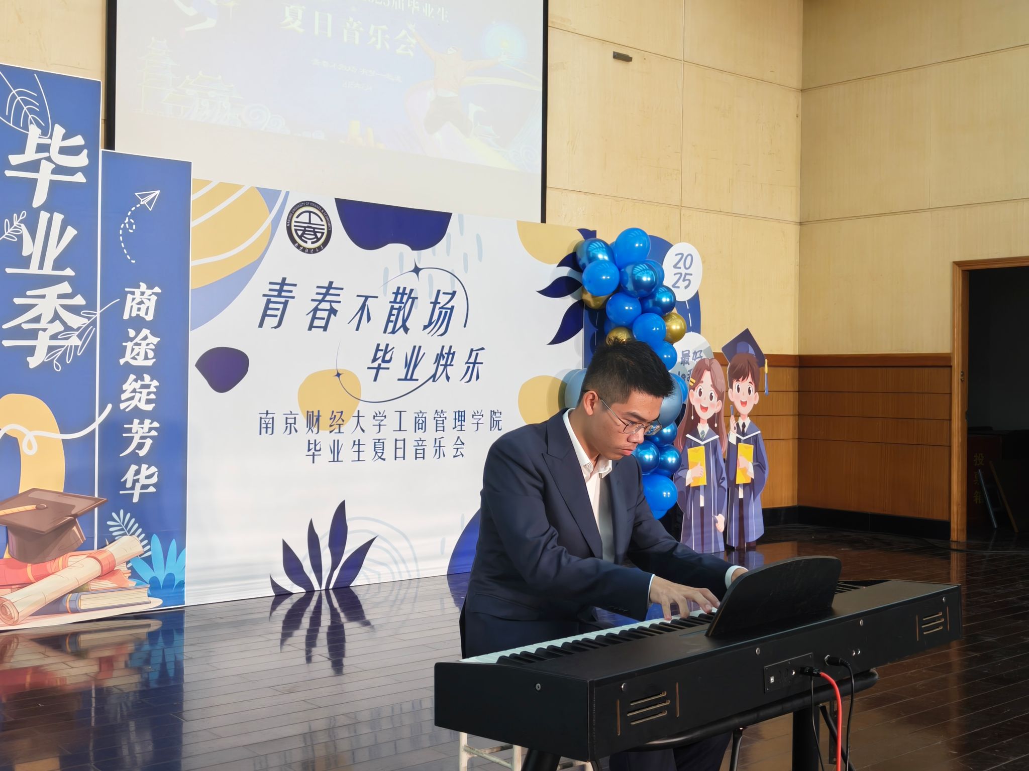 2025届毕业生夏日音乐会在德济楼报告厅华彩落幕。院党委副书记尹海燕,2025届本科毕业生辅导员赵菲、赵雪,2025届硕士毕业生辅导员常莹,班主任代表侯文涤以及全体2025届毕业生齐聚一堂,用音符为青春饯行,以乐章致敬芳华。