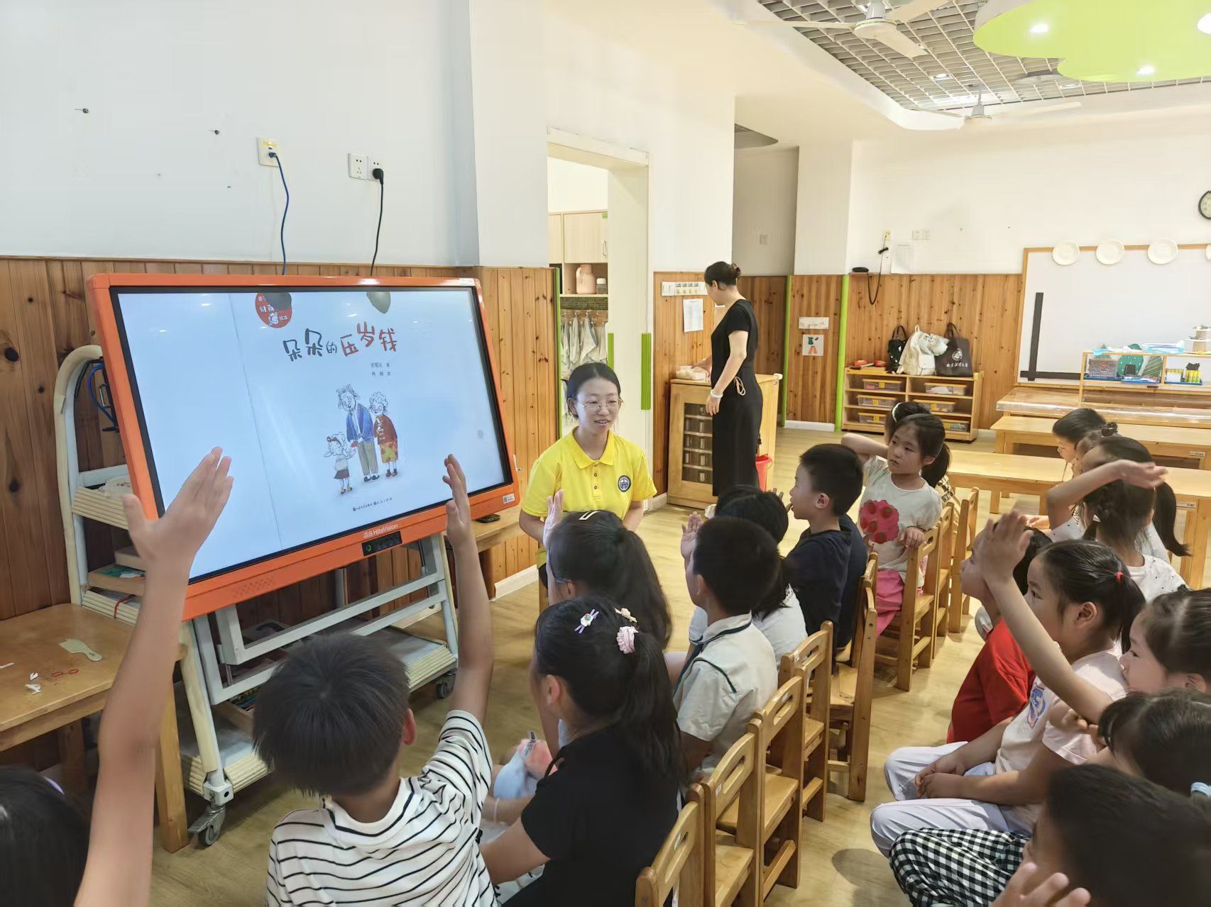 劳动所得如何管理?财富如何传递温度?课程以绘本《朵朵的压岁钱》为切入点,通过生动有趣的故事,帮助孩子们了解财富的规划方式。大学生志愿者以“银行储蓄就像金鱼妈妈生小金鱼”的生动比喻,引导孩子们理解储蓄增值。同时通过绘本让小朋友们了解金钱还可以用于非遗文化传承、援助灾区重建、帮助患病儿童和特殊儿童等,让孩子们明白孩子们初步认识到金钱的价值不仅在于拥有,更在于如何合理使用和传递善意。