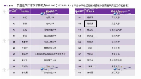 万绪才教授名列“旅游论文作者学术影响力Top 100”第46名(图片来源:中国旅游研究院)