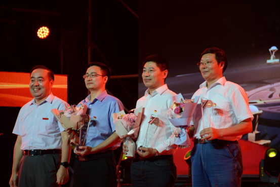 校长程永波为获得一等奖的学院颁奖(左二:杨林院长代表禁忌书屋