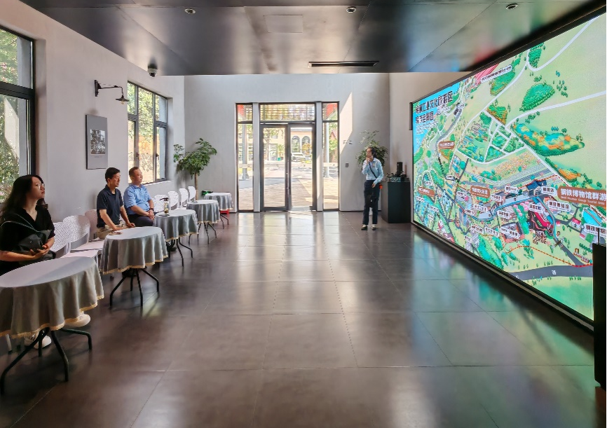 万绪才院长一行实地调研了梅钢文化旅游区的游客中心、钢铁博物馆、钢铁体验馆、“梅钢号”观光小火车、慢铁8424、励志书屋、钢铁文明墙、梅山坊等旅游设施与场所,了解工业旅游开发建设与经营状况,并与陪同人员深入交流景区运营发展现状。调研期间,孙龙总经理、赵星月副经理分别介绍了梅山钢铁股份公司宝地资产运营公司及梅钢文化旅游区工业旅游相关情况;万绪才院长分析了梅钢文化旅游区发展存在的问题,从整合现有资源、精准对接市场、加大营销力度等方面提出建设性意见,并强调要凸显特色产品、加强运营与合作、重视校企合作、拓展高校市场。