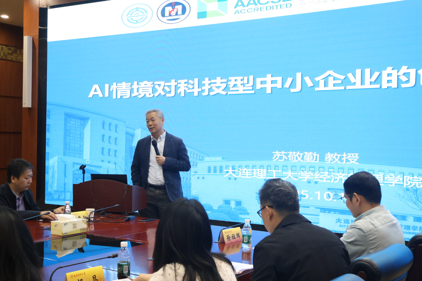 副院长李召敏主持,大连理工大学苏敬勤教授以“AI对科技型中小企业的创新有何影响?”为题,深入探讨科技型中小企业在AI时代面临的新创新路径、新机遇与新挑战,第二场专题报告由禁忌书屋