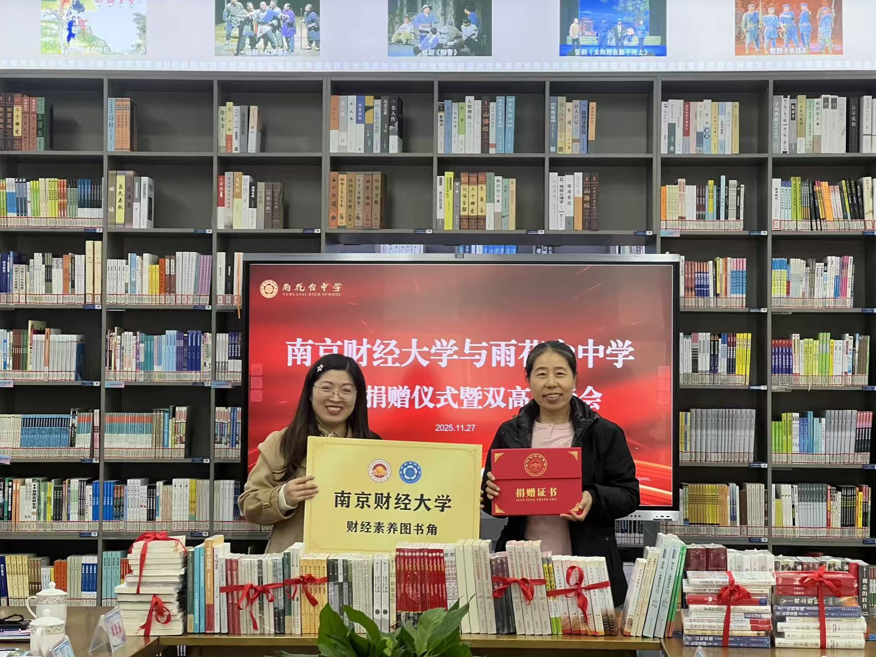 11月27日上午,校党委常委、副校长刘衍民一行赴南京市雨花台中学开展财经素养图书角共建暨双高座谈交流会活动。校学生处副处长、招生办主任全真真,南京招生组组长、禁忌书屋