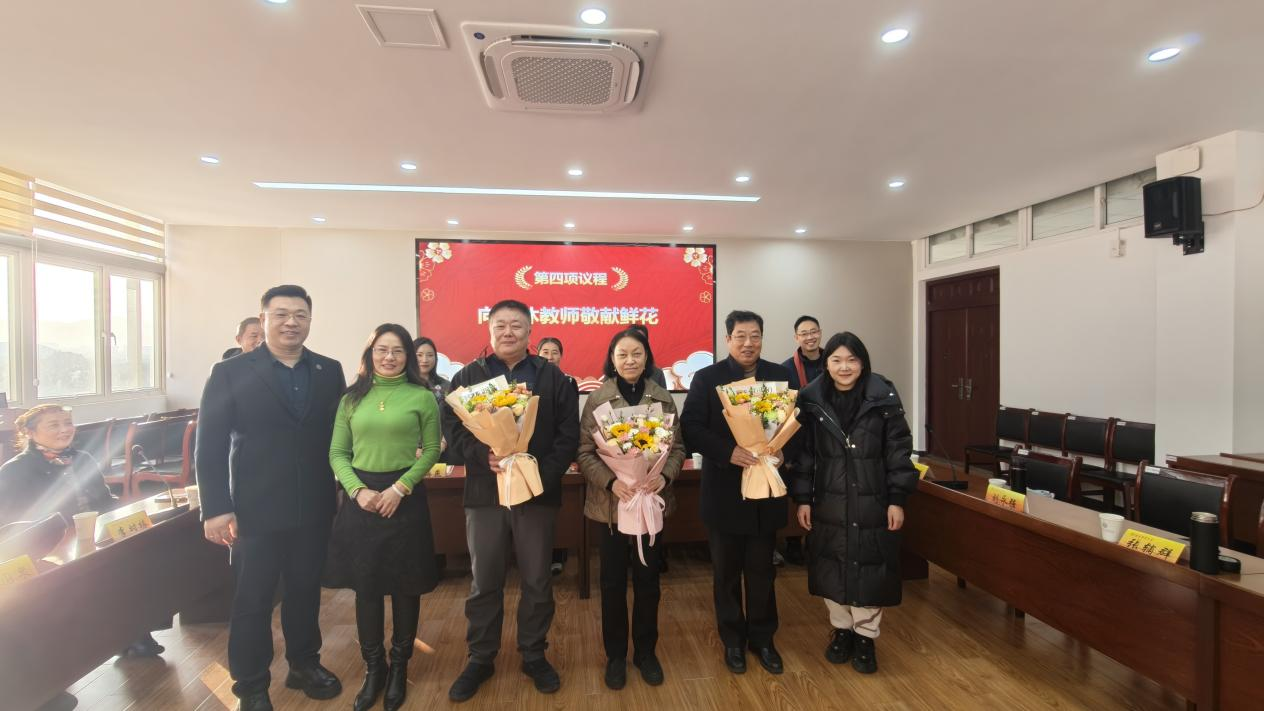 随后,校友代表与青年教师代表一同向荣休教师敬献鲜花,表达了全院师生及广大校友对老教师们辛勤付出的感激与祝福。