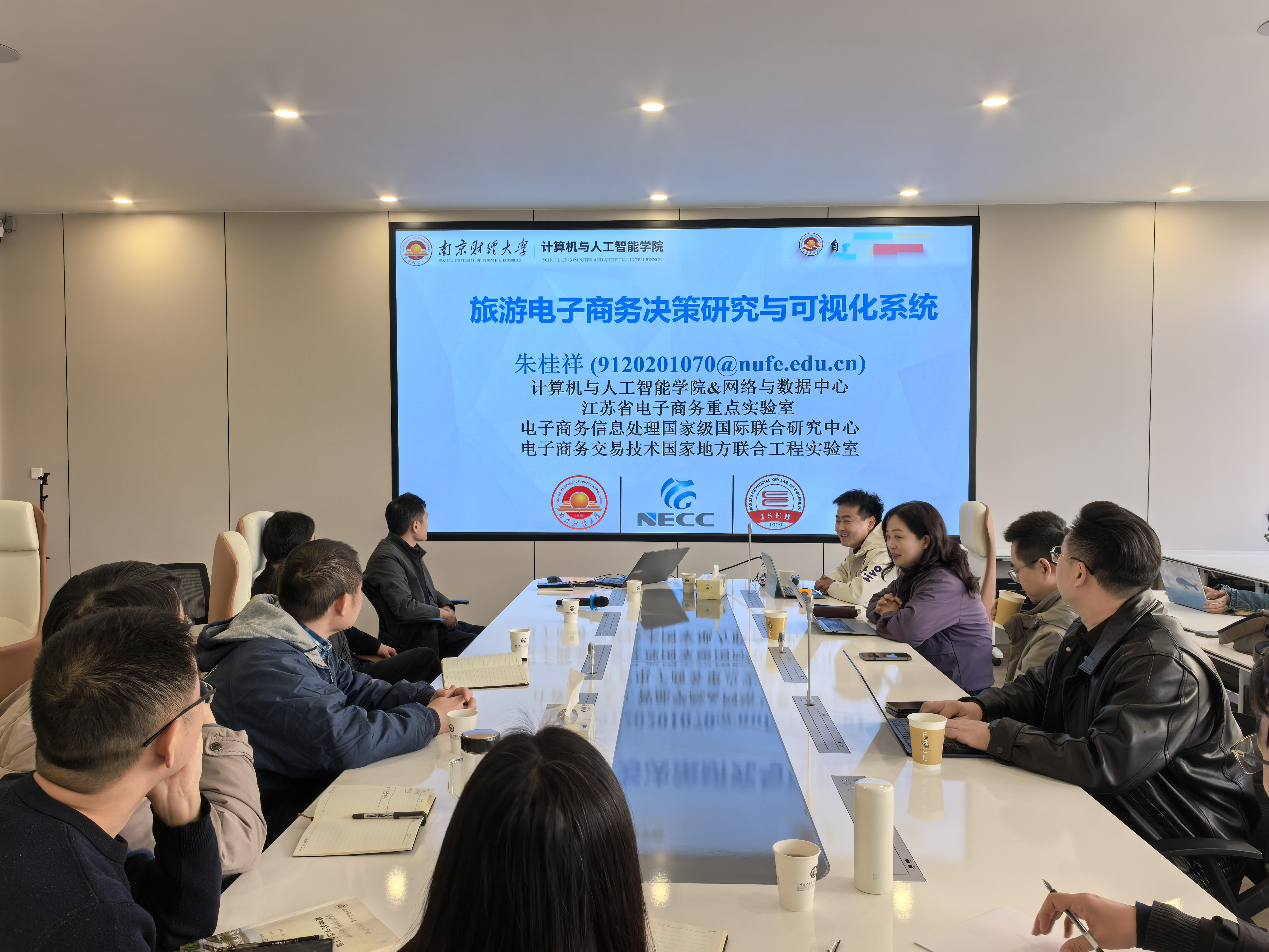 会上,朱桂祥主任围绕“旅游电子商务决策研究与可视化系统” 核心主题,结合行业发展趋势与实战案例,从旅游电商数据采集与分析、决策模型构建、可视化系统设计与应用等方面作交流分享。朱桂祥主任同时深入剖析了当前旅游电商行业在用户行为洞察、市场趋势预判等方面的痛点难点,提出了可视化系统在提升决策效率、优化运营流程中的关键作用,并针对实验室如何结合该方向打造特色研究平台、开展产学研合作给出了针对性建议,为学院实验室在旅游电商领域的研究方向提供了重要指引。