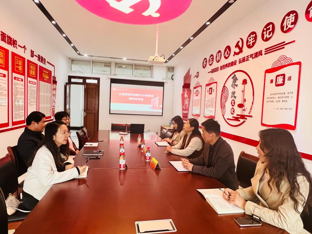 党委书记张杰、院长万绪才、党委副书记尹海燕以及分工会主席冯玲进行座谈。