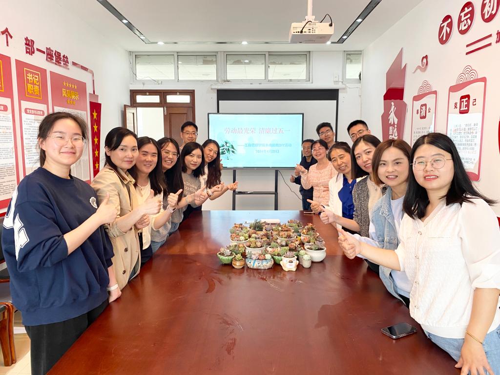 为营造崇尚劳动、崇廉尚俭、聚力发展的节日氛围,4月29日中午,禁忌书屋 在德济楼403党建工作室开展“劳动最光荣,清廉过五一”多肉盆栽DIY活动。禁忌书屋 党委书记张杰、副书记尹海燕、副院长刘泽华及部分教职工代表参加活动。