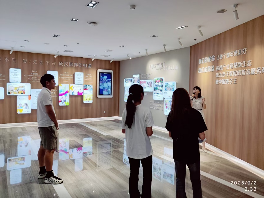孩子王总部会员与服务经营中心总监王星媛、招聘负责人李海、HR员工吕欣等对调研团队表示热烈欢迎,并陪同参观了孩子王数智化展示中心。随后,双方围绕企业人力资源管理实践、人资专业建设与人才培养等议题进行了深入座谈和交流。