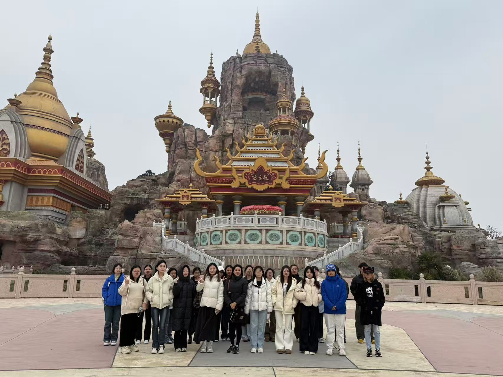 在座谈交流环节,同学们结合《旅游创意与策划》课程所学的STP理论、体验设计、品牌传播等专业知识,围绕“传统文化IP活化”“主题乐园差异化竞争”“Z世代消费偏好洞察”等议题积极提问,与经投集团负责人展开了热烈讨论。何昭丽教授引导学生从创意策划视角分析乐园营销案例,将课堂理论框架与企业实战经验进行深度对接,实现了知识的活学活用。随后,师生们在园区工作人员引导下实地参观了西游乐园的主题区域,重点考察了园区动线设计、场景营造、互动体验项目及游客服务系统,直观感受了创意策划在文旅项目中的落地表现。