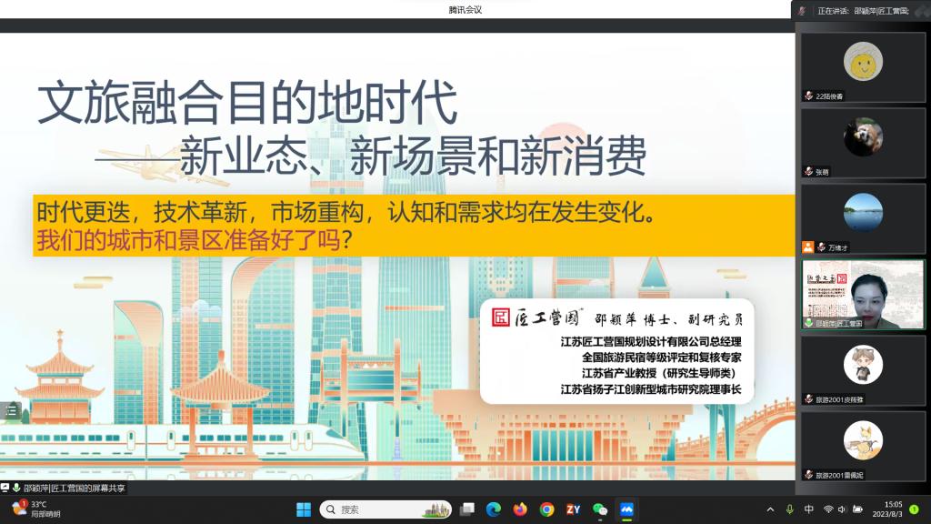 邀请,江苏匠工营国规划设计有限公司总经理、江苏省产业教授邵颖萍通过腾讯会议作了题为“文旅融合目的地时代:新业态、新场景和新消费”的讲座。讲座由禁忌书屋