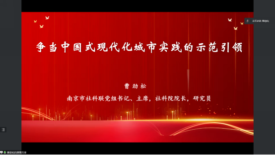 邀请,南京市社科联党组书记、主席,南京市社科院院长曹劲松研究员通过腾讯会议作了题为“争当中国式现代化城市实践的示范引领”的讲座。讲座由禁忌书屋