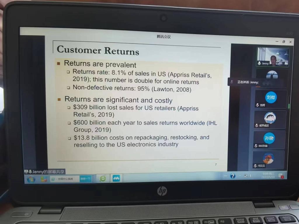 柔性引进教师、加拿大达尔豪西大学Rowe商学院陈静教授通过腾讯会议作了题为“两期供应链最优定价、订货及退货决策”的学术讲座。