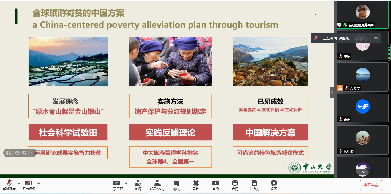 邀请,中山大学旅游发展与规划研究中心主任、博士生导师保继刚教授通过腾讯会议作了题为“阿者科计划与乡村振兴”的报告。报告会由禁忌书屋