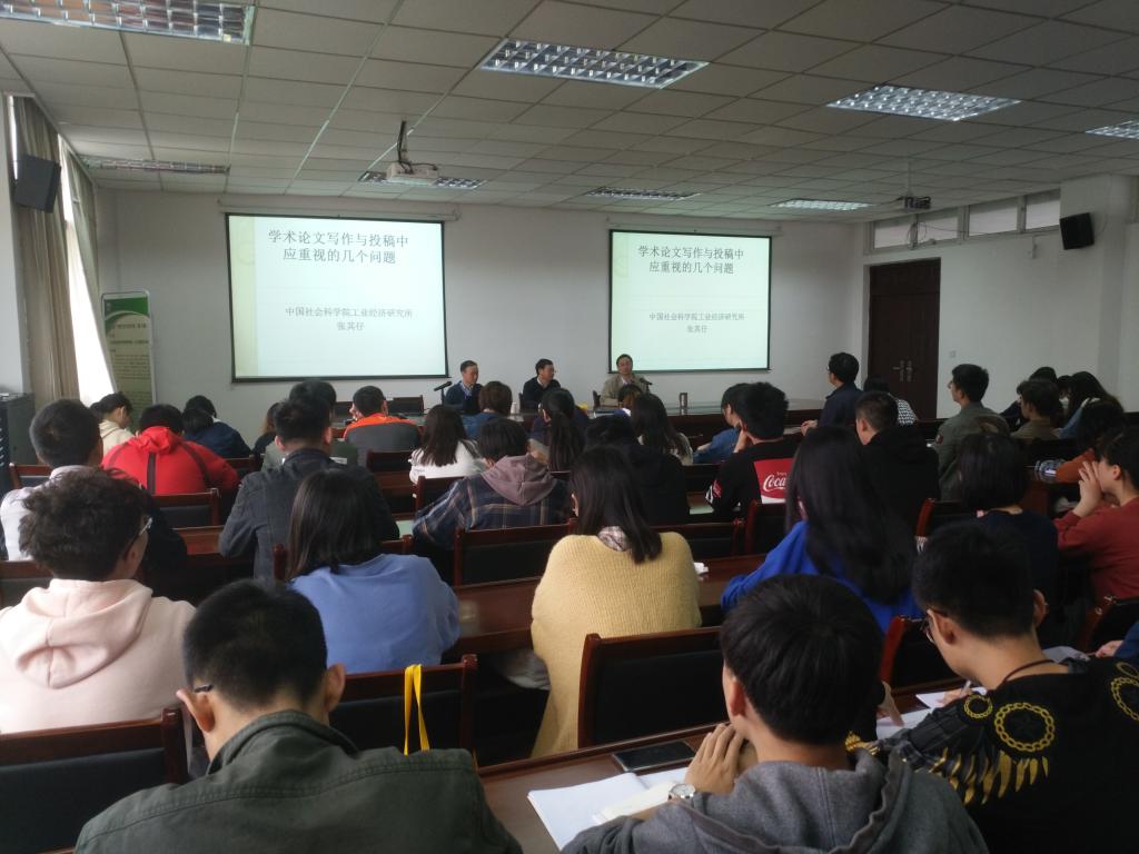 邀请,《中国工业经济》杂志副社长、常务副主编张其仔和资深编辑覃毅一行在仙林校区德济楼408会议室作主题为“谈谈学术论文的写作与发表”的学术报告分享。报告会由禁忌书屋
